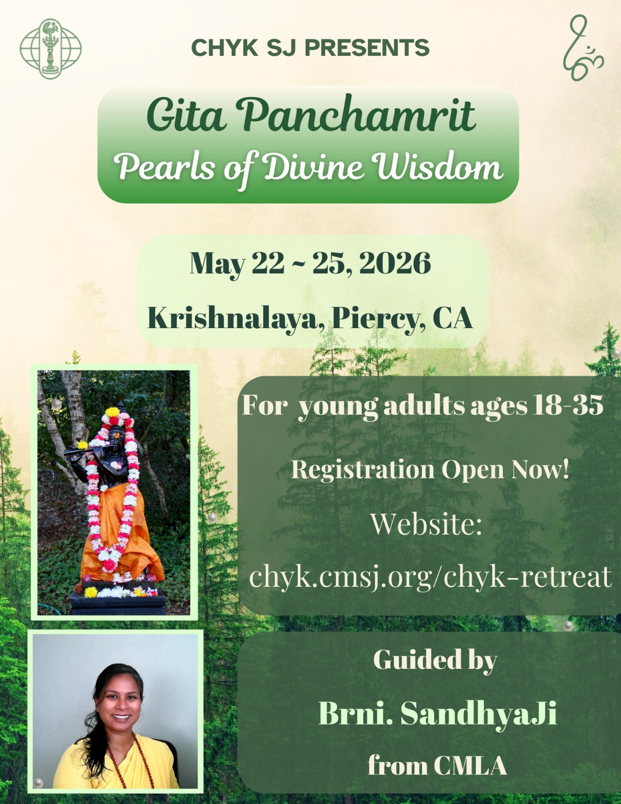 The retreat will be led by Brni Sandhya Chaitanya from CMLA.