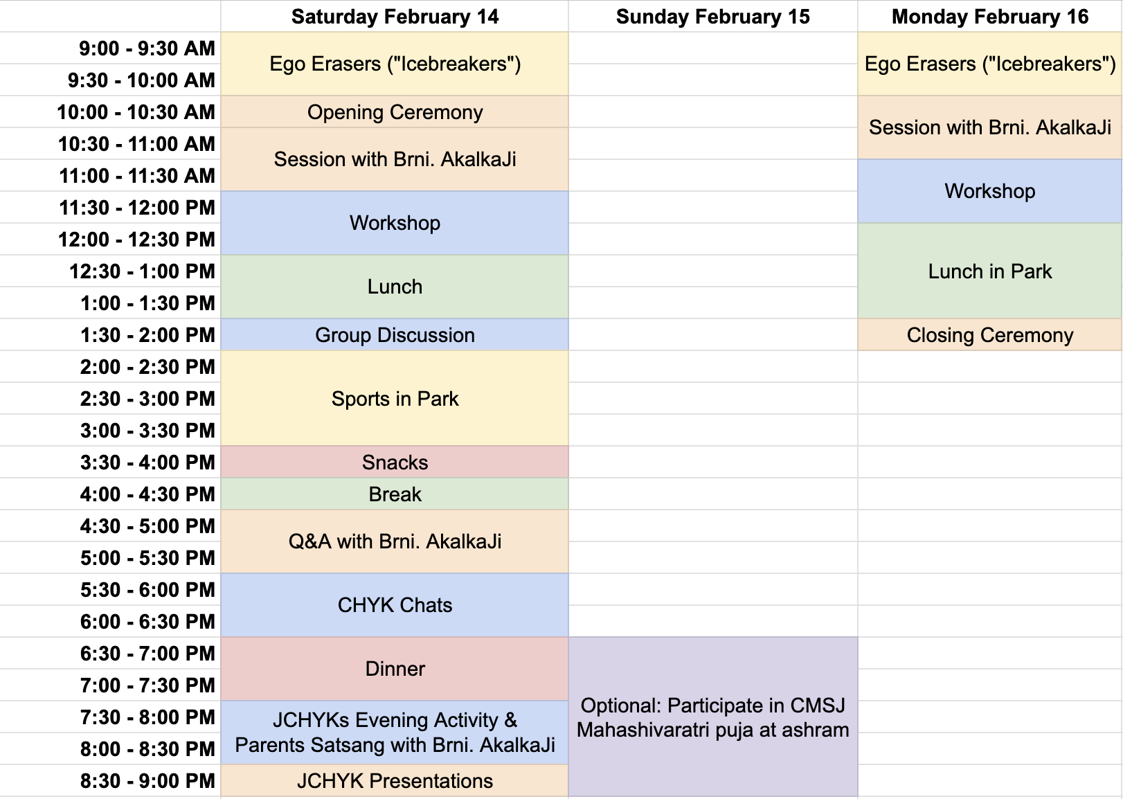 We are excited to announce that Brahmacharini AkalkaJi will be visiting from New Jersey to conduct this retreat. AkalkaJi led the 2024 CMSJ Junior CHYK retreat, and was incredibly popular with the J-CHYKs, so we are super excited to have her return!