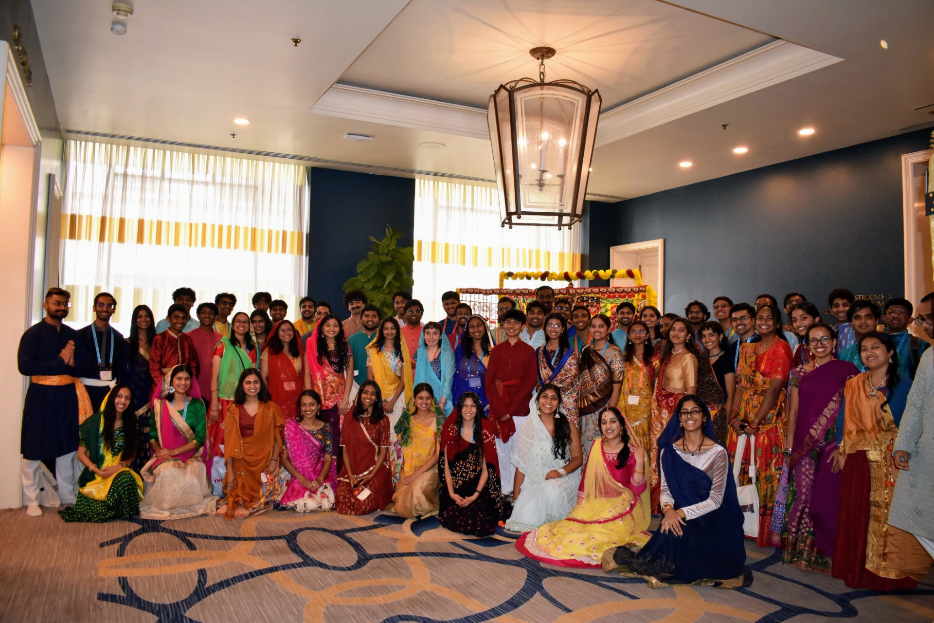 Mornings began with Mukundamala chanting led by Swami Aparajitanandaji and guided meditation sessions by Swami Ishwaranandaji. CHYKs then led various exercises including yoga, musical HIIT workouts, morning walks, and dandiya, ensuring that everyone was bright and energized for the activities to come. After morning exercise, CHYKs had a special CHYK-only satsang with Swami Prakashananda on Manah Shodhanam, learning how to purify our minds. Swamiji also spoke on Perspectives of Sanatana Dharma. After a wonderful breakfast, CHYKs were transported to Vrindavan as Swami Swaroopanandaji described the devotion of the gopis. There were also beautiful bhajans, including ones by Swamini Radhikanandaji, Swami Aparajitanandaji, Br. Sohamji, and Brni. Stutiji. Afterwards, at lunch and dinner, CHYKs took turns participating in seva, directing the flow of traffic, helping seniors carry their plates, and serving water.